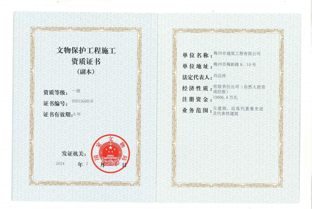 文物保護工程施工一級